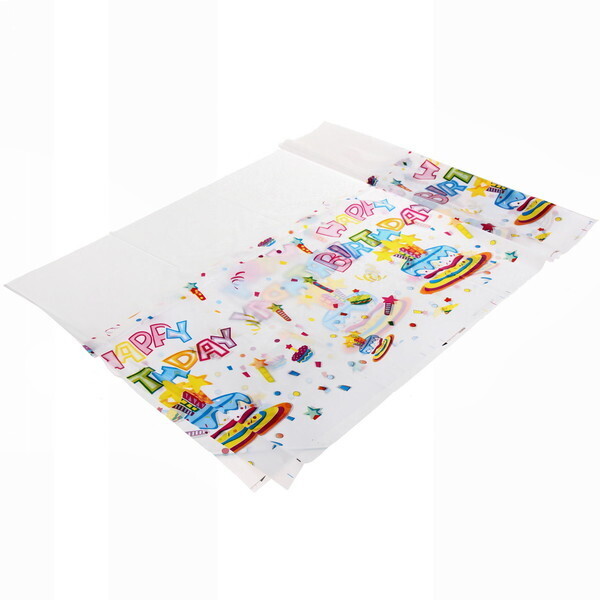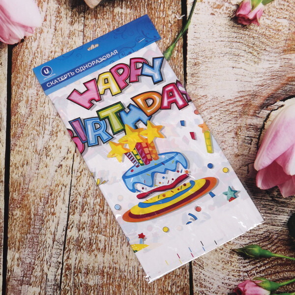 Скатерть 'Праздник' создана специально для тех, кто ценит комфорт и хочет сосредоточиться на главном – празднике. Яркий дизайн с надписями 'HAPPY BIRTHDAY' и тематическими рисунками создаст идеальную атмосферу веселья.