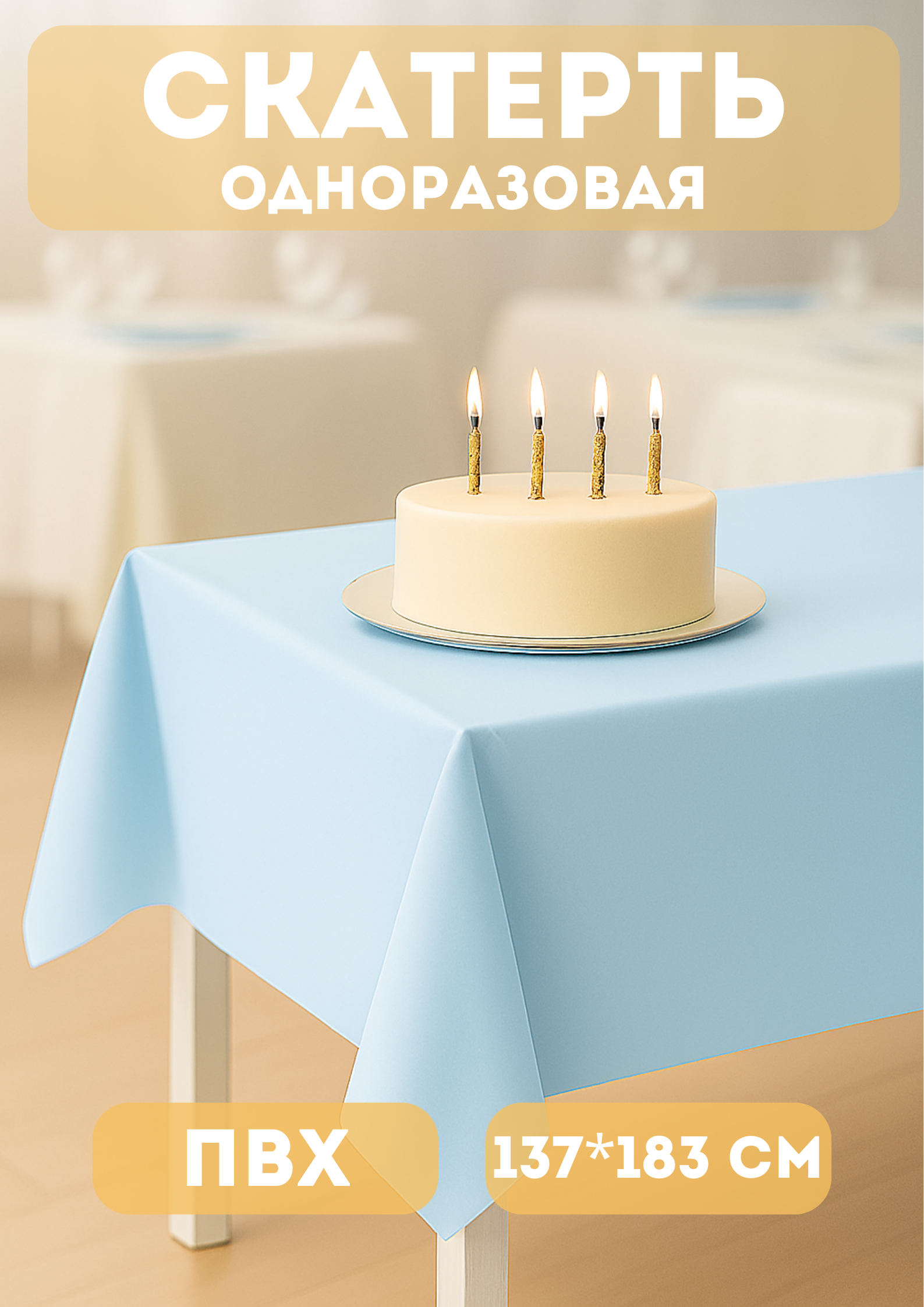 Скатерть одноразовая 'Радуга' голубая 137х183см, пвх, практичная и водостойкая