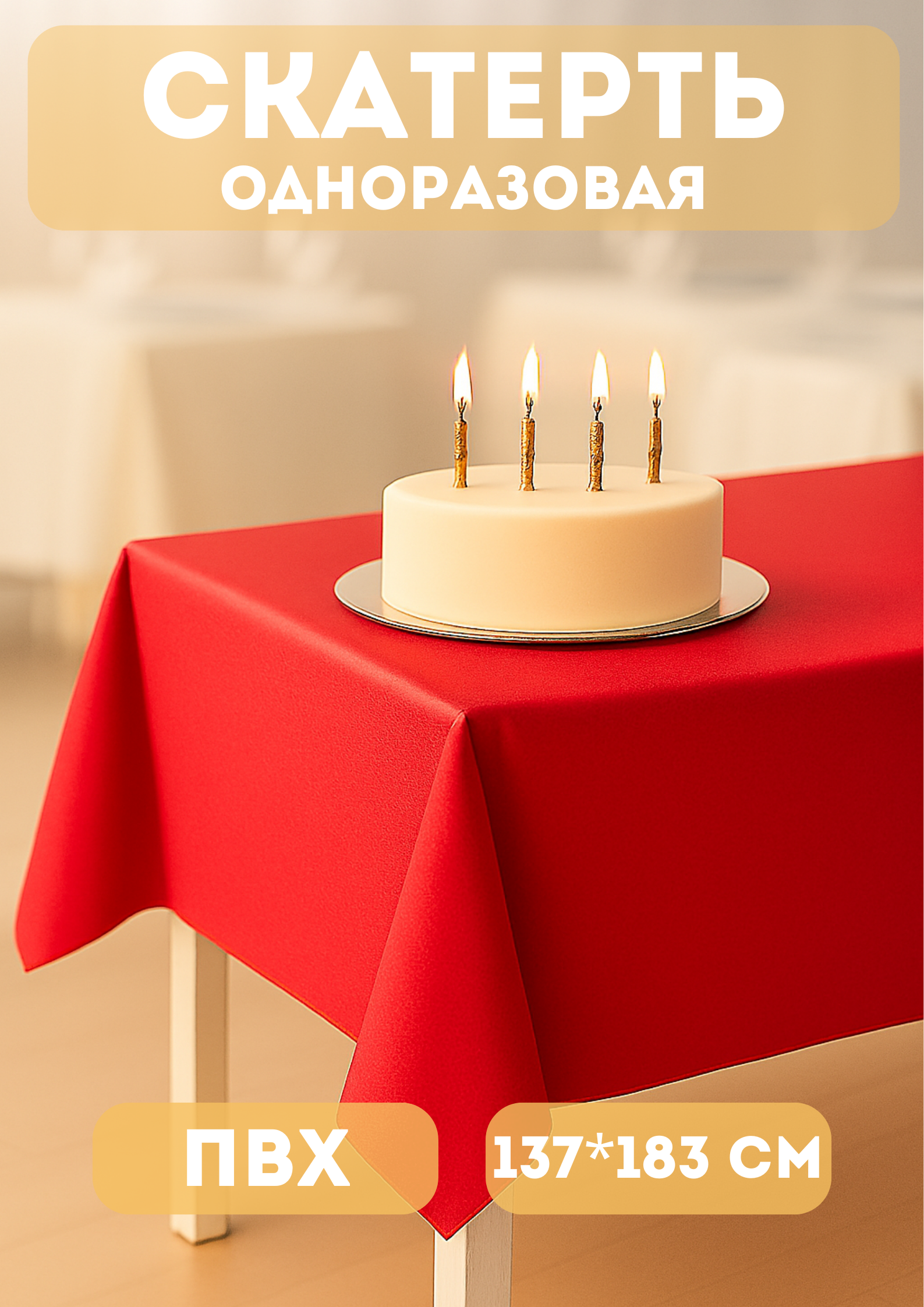 Скатерть 'Радуга' станет вашим надежным помощником на любом мероприятии. Яркий красный цвет создает праздничную атмосферу, а практичный материал ПВХ обеспечивает легкую очистку от любых загрязнений.