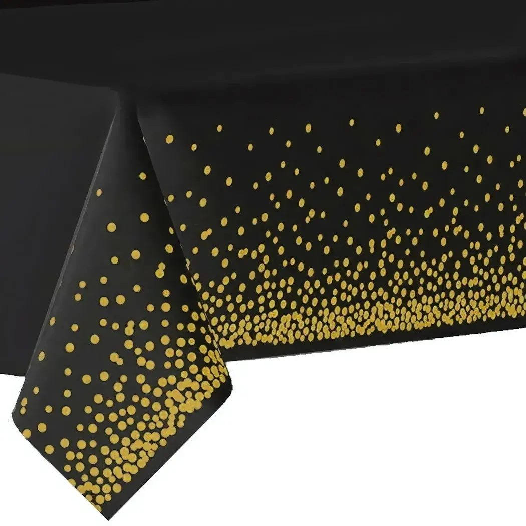 Скатерть «Руби» в черном цвете с золотыми узорами добавит элегантности и стиля любому мероприятию. Она выполнена из качественного ПВХ, что обеспечивает долговечность и легкость в уходе. Эта скатерть не только украсит ваш стол, но и защитит его от загрязнений и повреждений, что делает её идеальным выбором для праздников и повседневного использования.