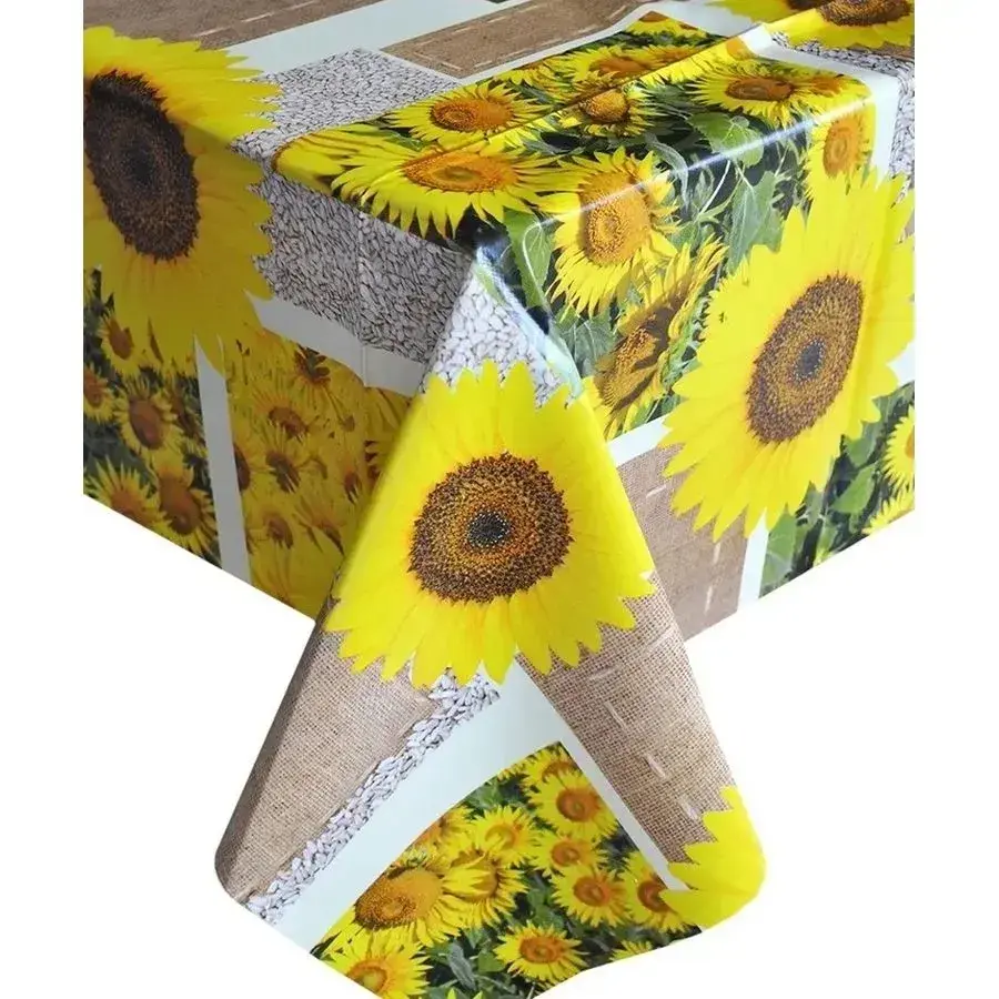 Скатерть Florista 130см, принт подсолнечники, желтый/бежевый, винил, влагостойкая