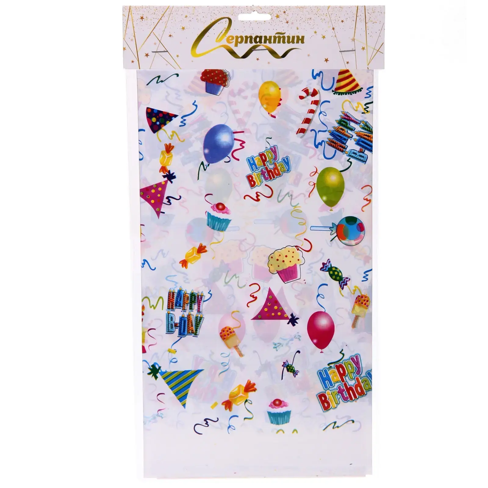 Скатерть «Веселый праздник» 108x180 см, ПВХ, белая, праздничное оформление стола