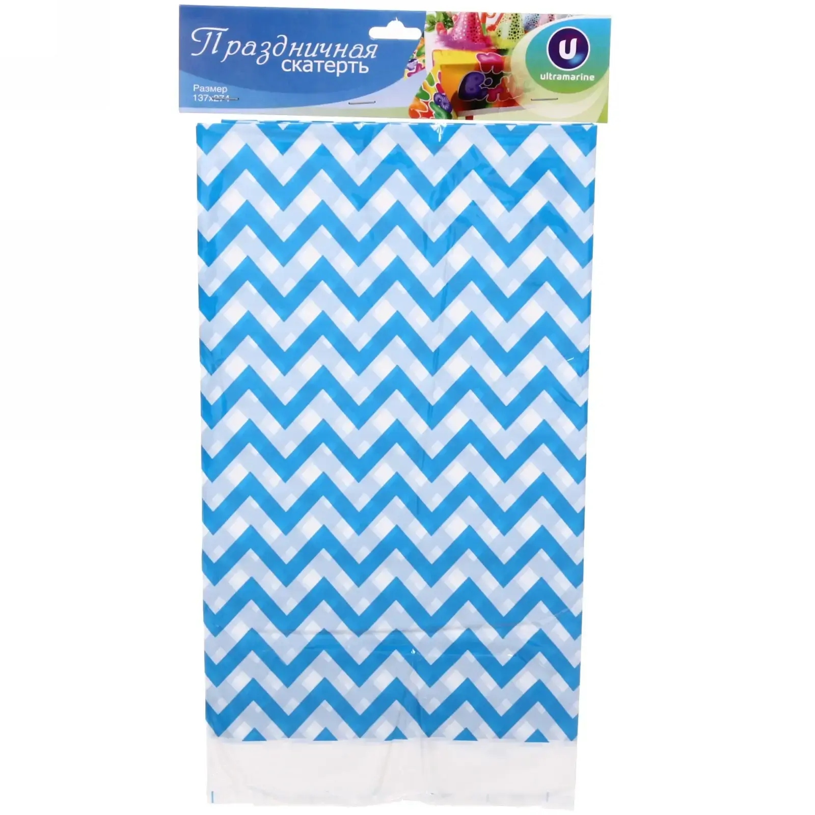 Скатерть «Волны» предназначена для использования на различных мероприятиях: от семейных праздников до корпоративных вечеринок. Она легко укладывается на стол и придаёт ему стильный вид благодаря своему зигзагообразному узору в голубом и белом цветах. Просто разложите её на столе, и ваш праздник станет ещё более ярким и запоминающимся.