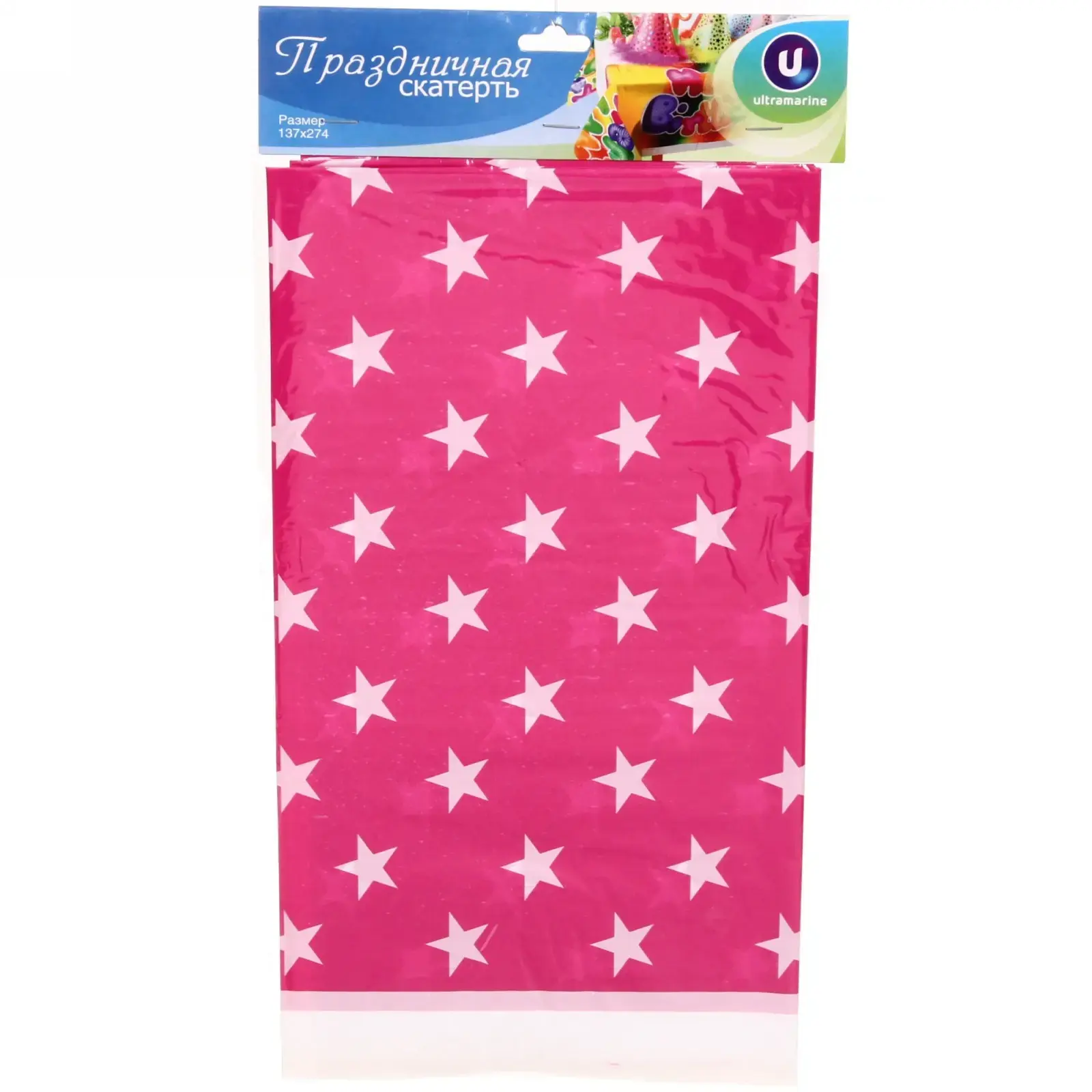 Размер скатерти составляет 137 см на 274 см, что позволяет использовать её на столах различной формы и размера. Ярко-розовый цвет с белыми звездами делает её универсальной для любого праздника. Не упустите возможность сделать ваш праздник особенным с помощью скатерти «Звезды»!