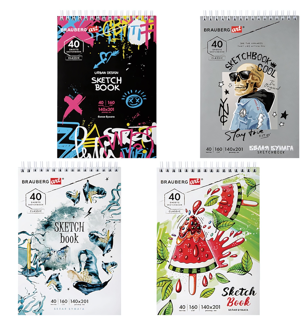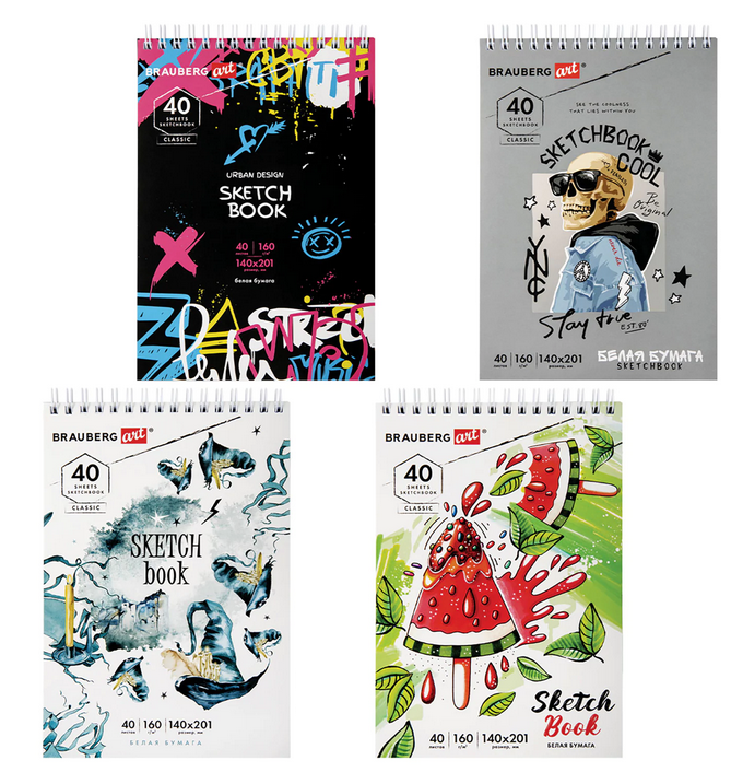 Скетчбук представлен в разных вариантах оформления обложки — дизайн в ассортименте. Отгружается один товар, расцветка определяется случайным образом. Такой формат подойдет школьникам, студентам художественных направлений, иллюстраторам и всем, кто развивает навык ежедневного скетчинга.