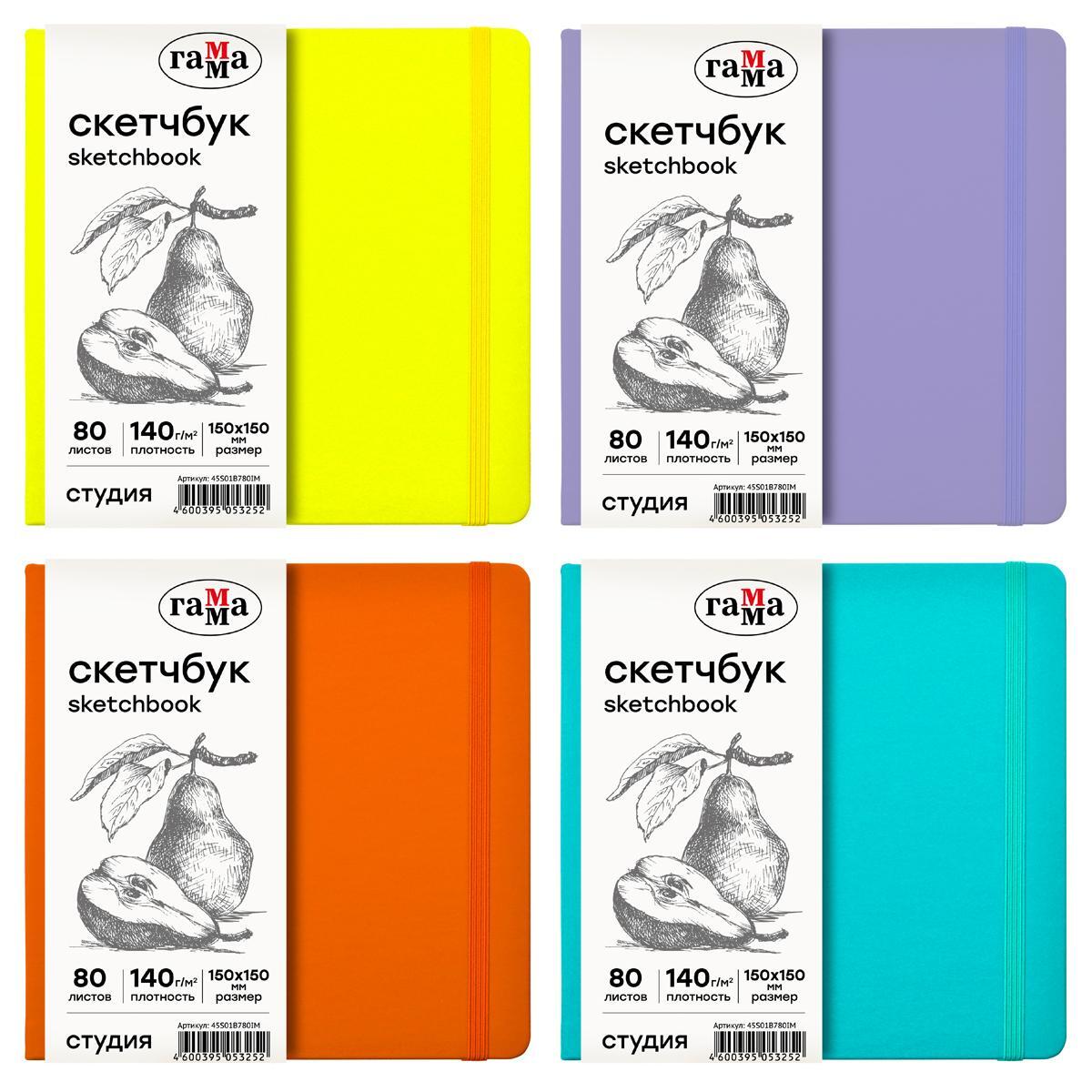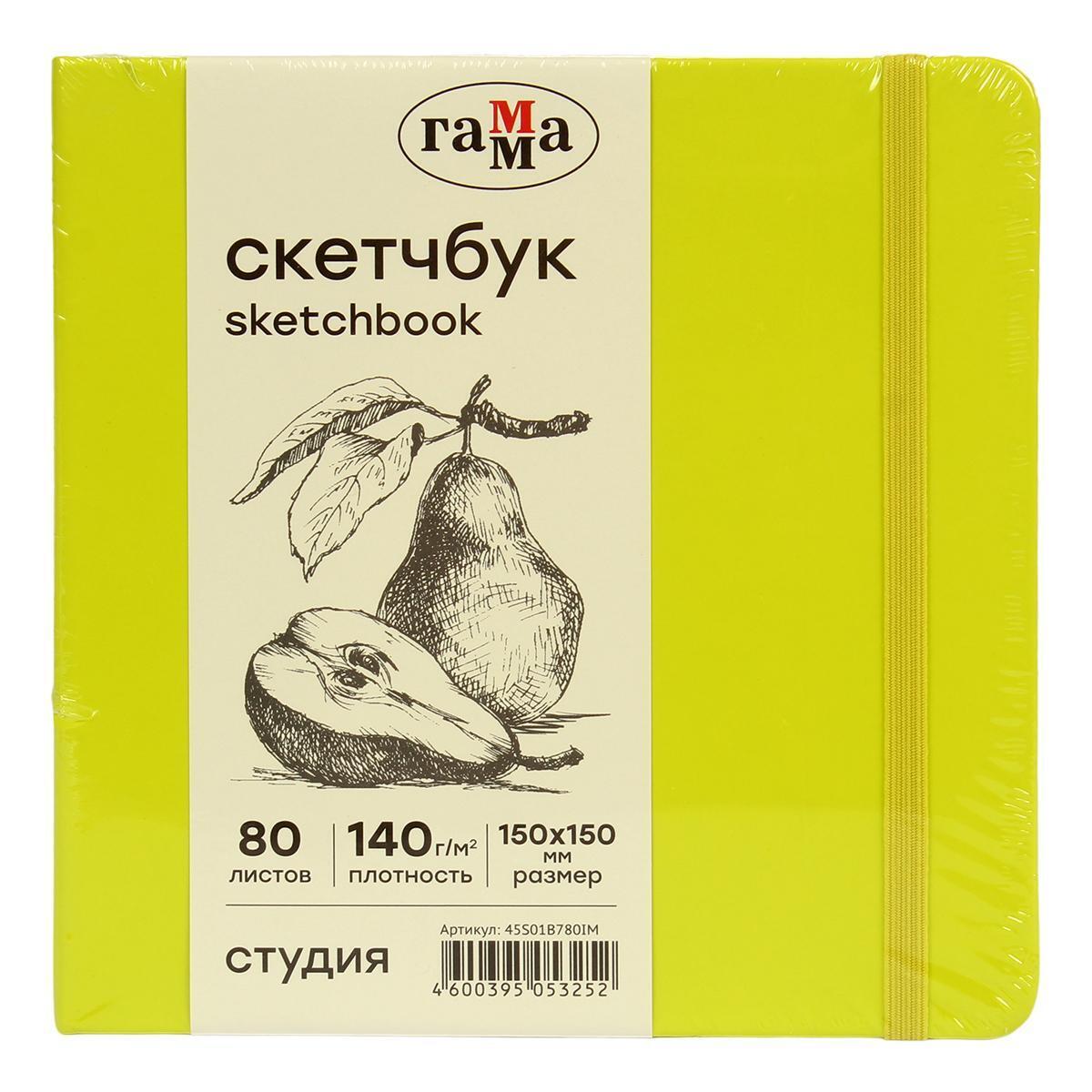 Скетчбук 'Студия' 150х150 мм, 80 листов, плотность 140 г/м2, на резинке