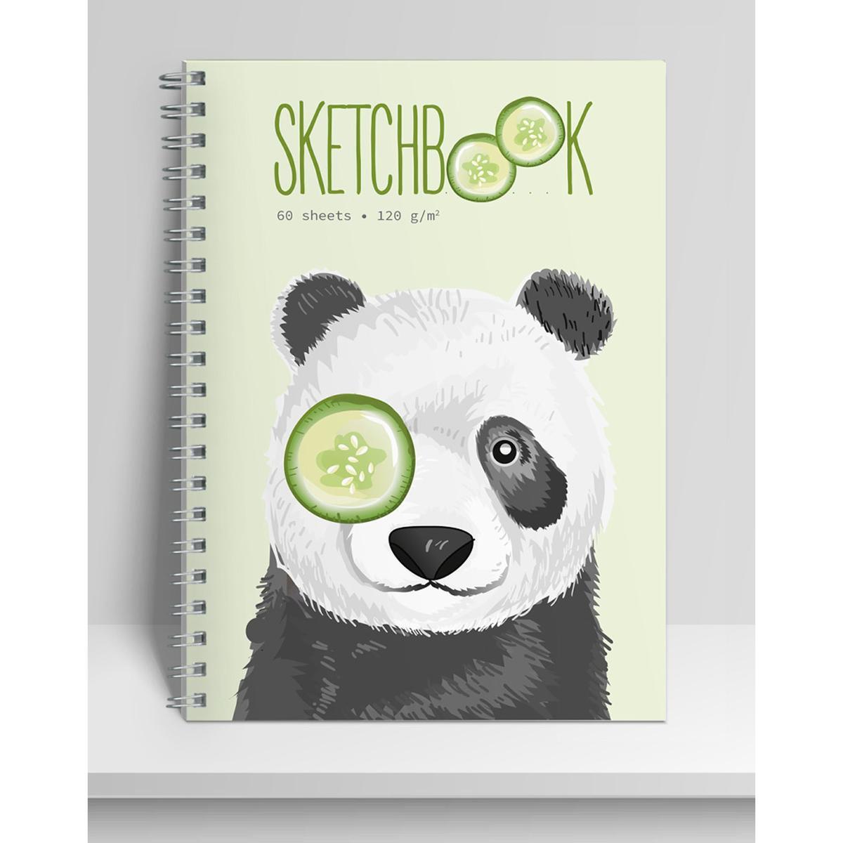 Скетчбук А5, 60л, софт-тач, бумага 120г/м², иллюстрация панды — для эскизов и зарисовок
