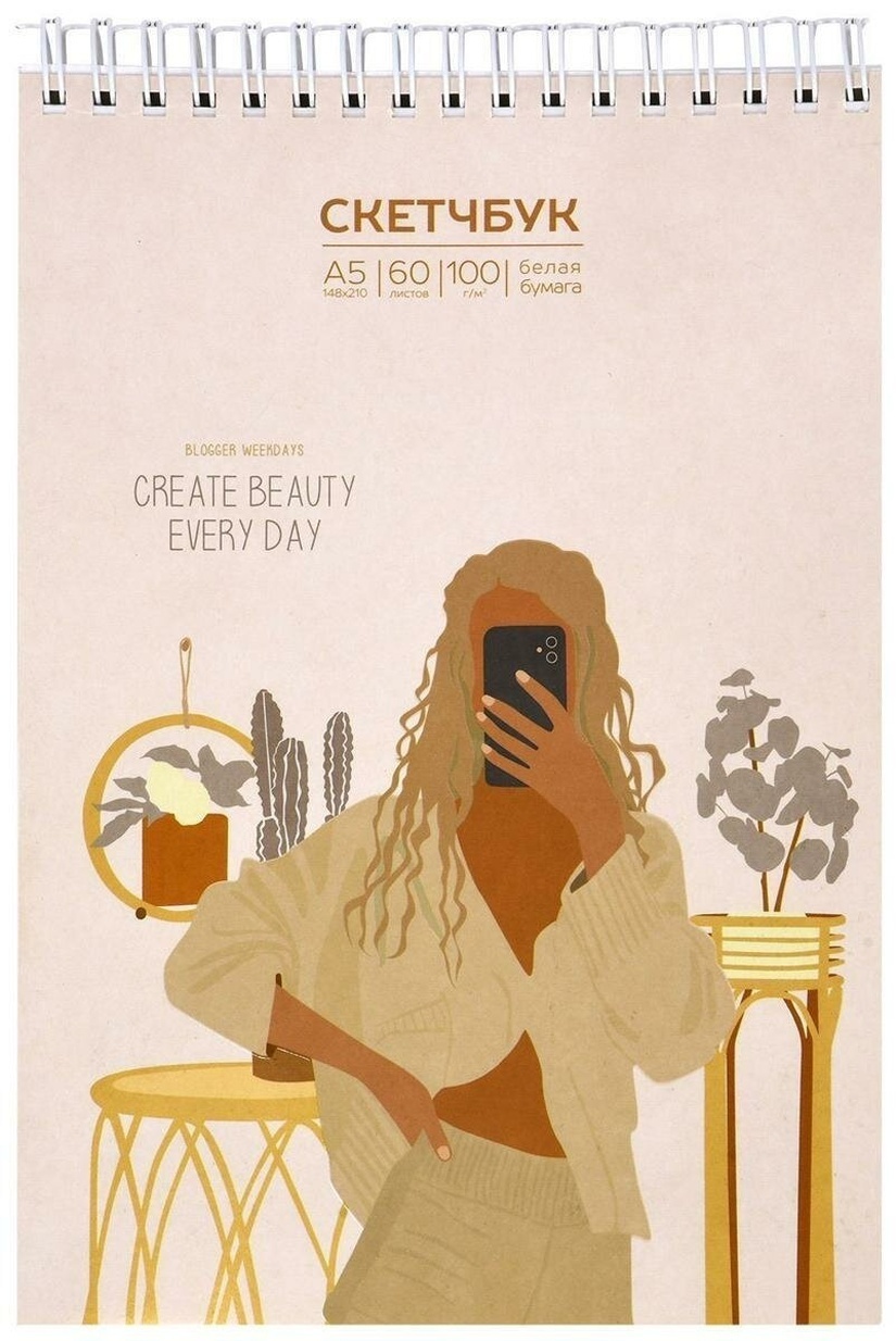 Скетчбук А5 60л «Жизнь блогера» 100г/м², гребень, твёрдая обложка, Schoolformat