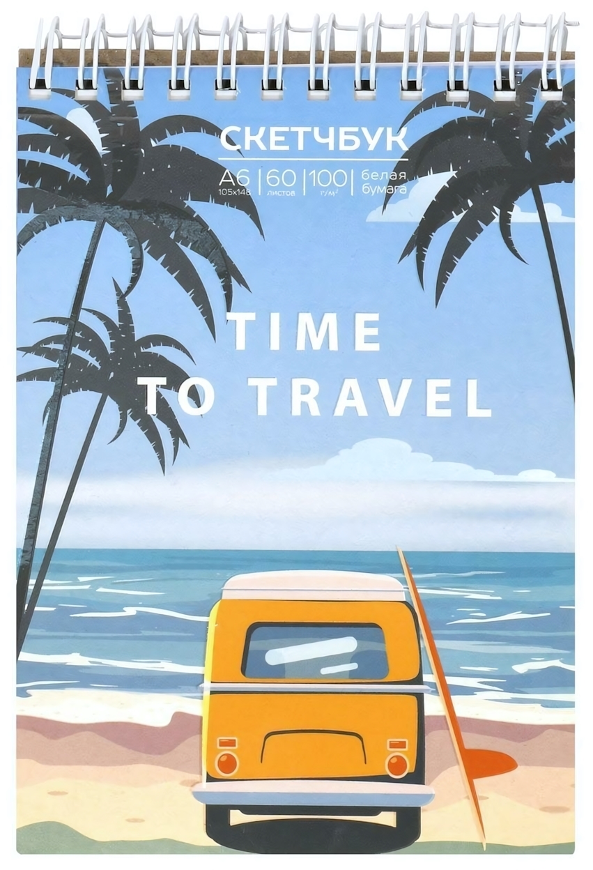 Скетчбук А6 "Летние путешествия", 60л, 100г/м2, гребень, твердый картон