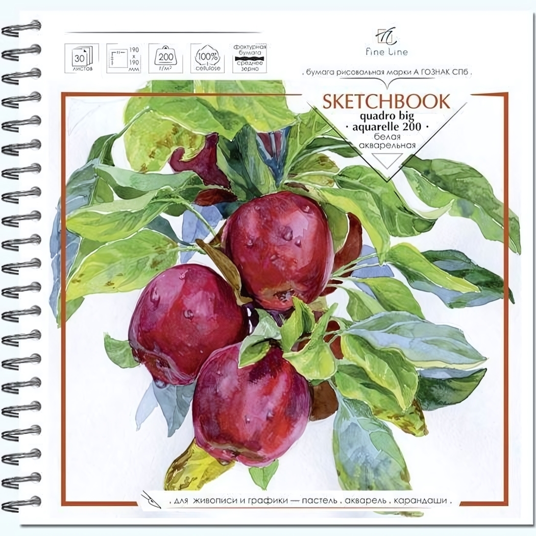 - Плотность листов: 200 г/м² (оптимально для акварельной техники)