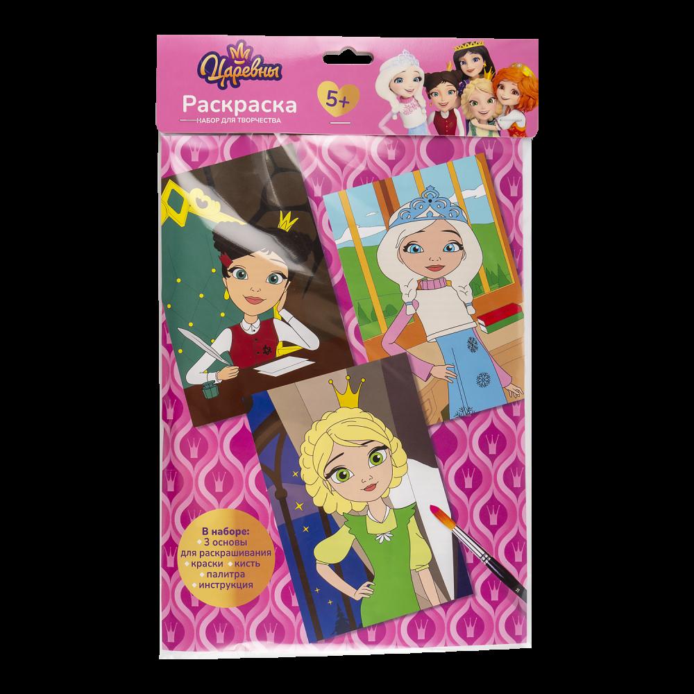 Набор для скетчинга «Царевны Даша, Аленка и Василиса», 3 сюжета, акварельные краски, кисть, плотная бумага 35,5х22,5см