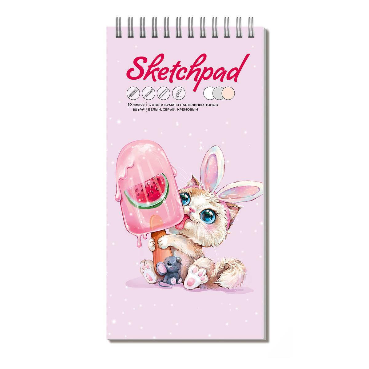 Скетчпад «Сладкоежка» 105х210 мм, 80 листов, 3 цвета блока, твёрдый переплёт