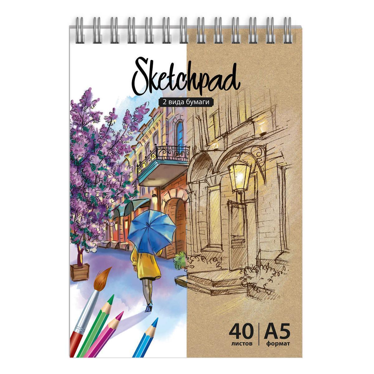 Скетчпад А5 "Контраст" 40л, 2 вида бумаги, спиральное крепление