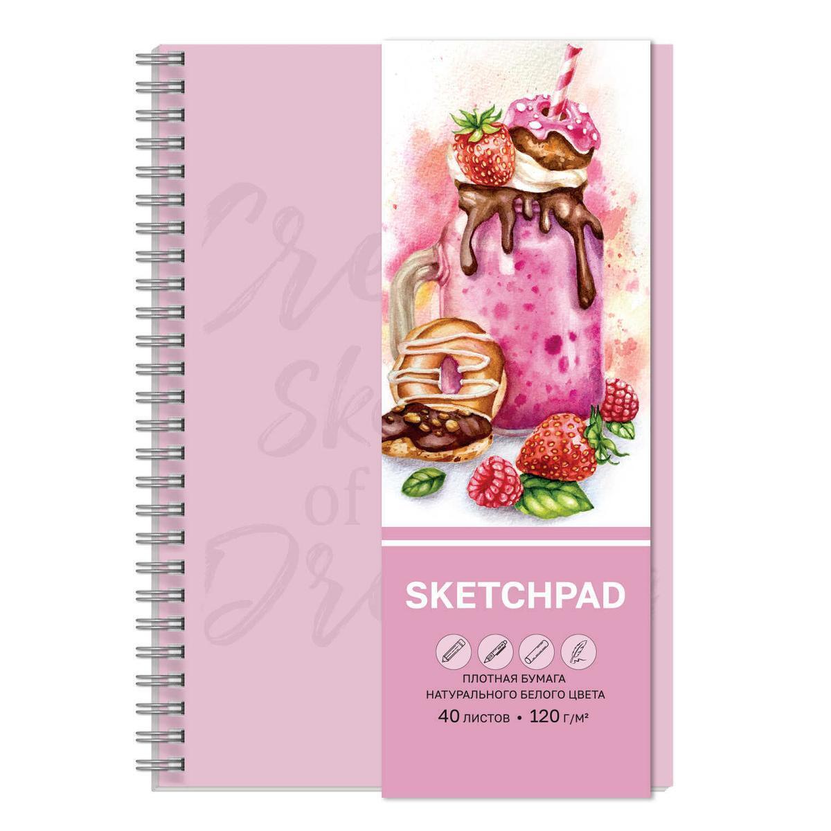 Скетчпад А5+ "Десерт", 40л, плотность 120г/м², белый офсет, твёрдая обложка на гребне