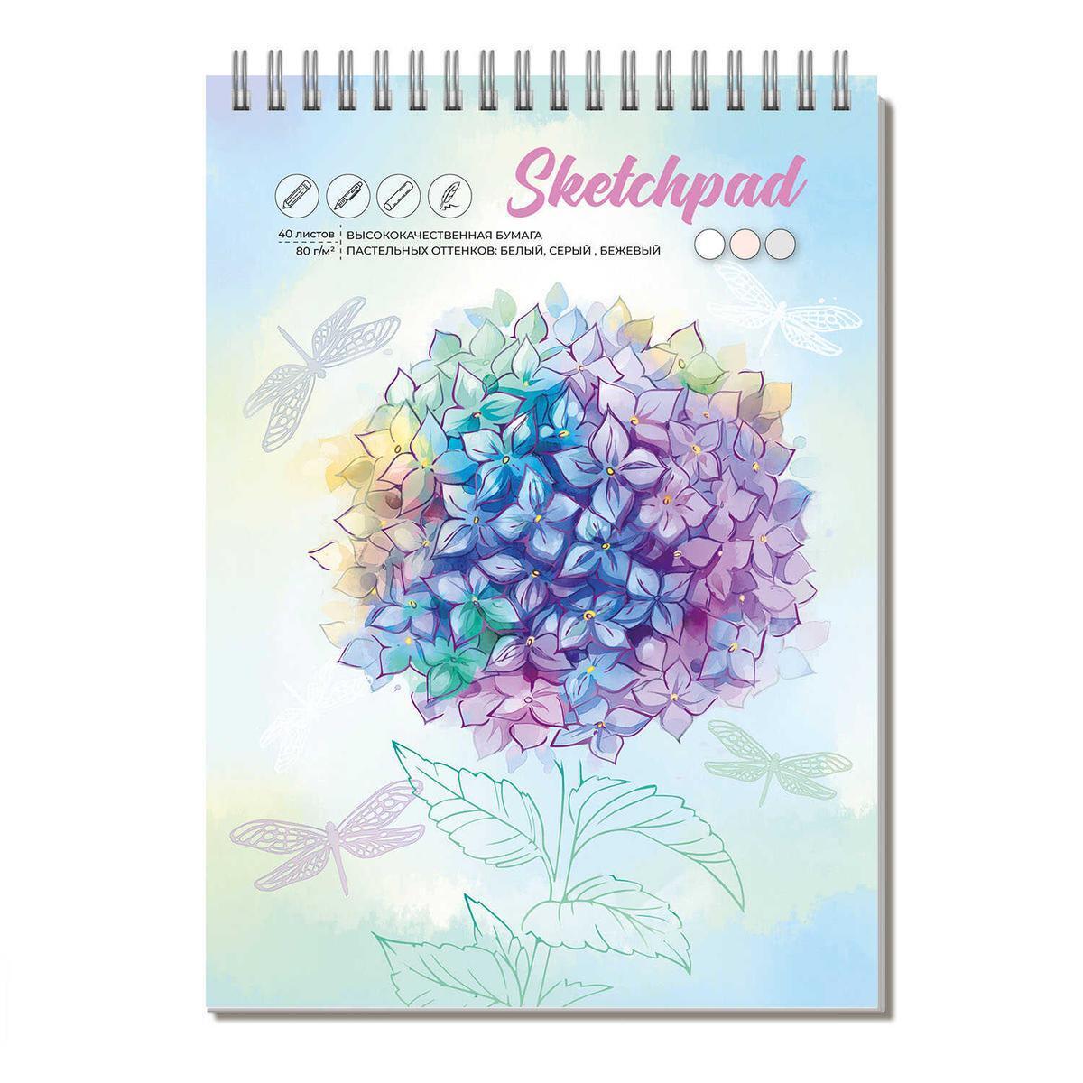 Скетчпад А5 "Гортензия", 40л, белый/серый/бежевый офсет, твердая обложка