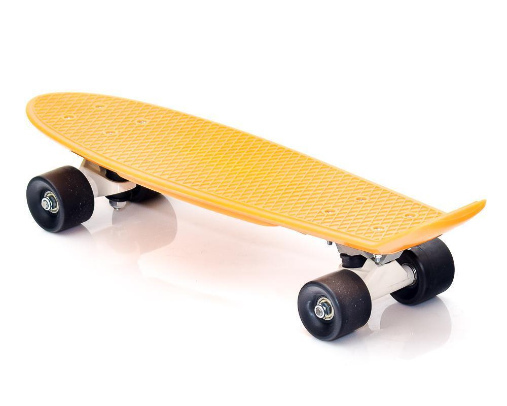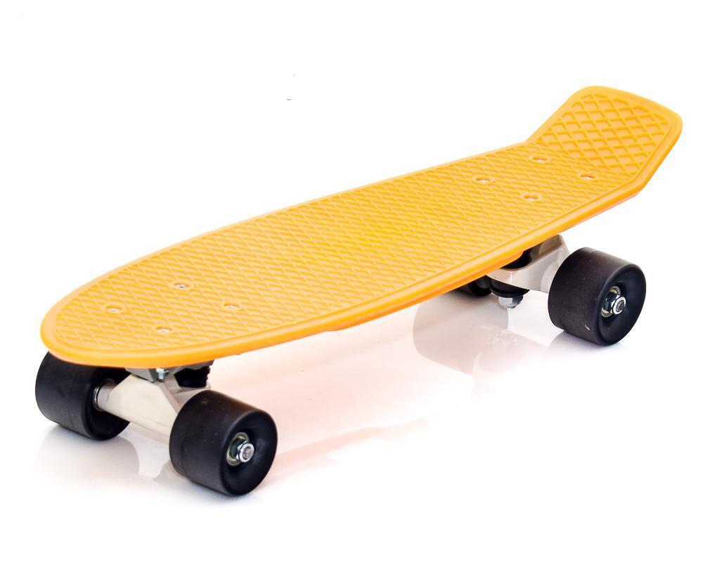 Модель оснащена резиновыми колесами с хромированными подвесками для плавного хода. Закругленные края деки и оптимальный размер 55х15 см обеспечивают комфортное катание. Вес скейтборда — 1.8 кг, что идеально подходит для детских рук.