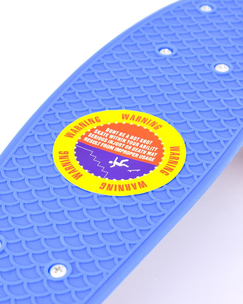 Специальные предупреждающие наклейки напоминают о необходимости использования защитной экипировки. Компактные габариты и вес 2.3 кг позволяют легко переносить скейтборд в рюкзаке.