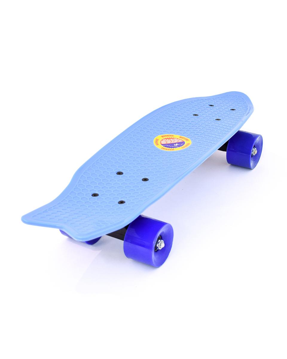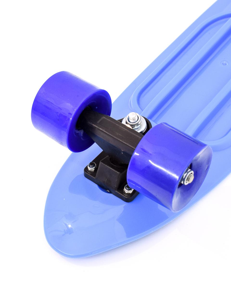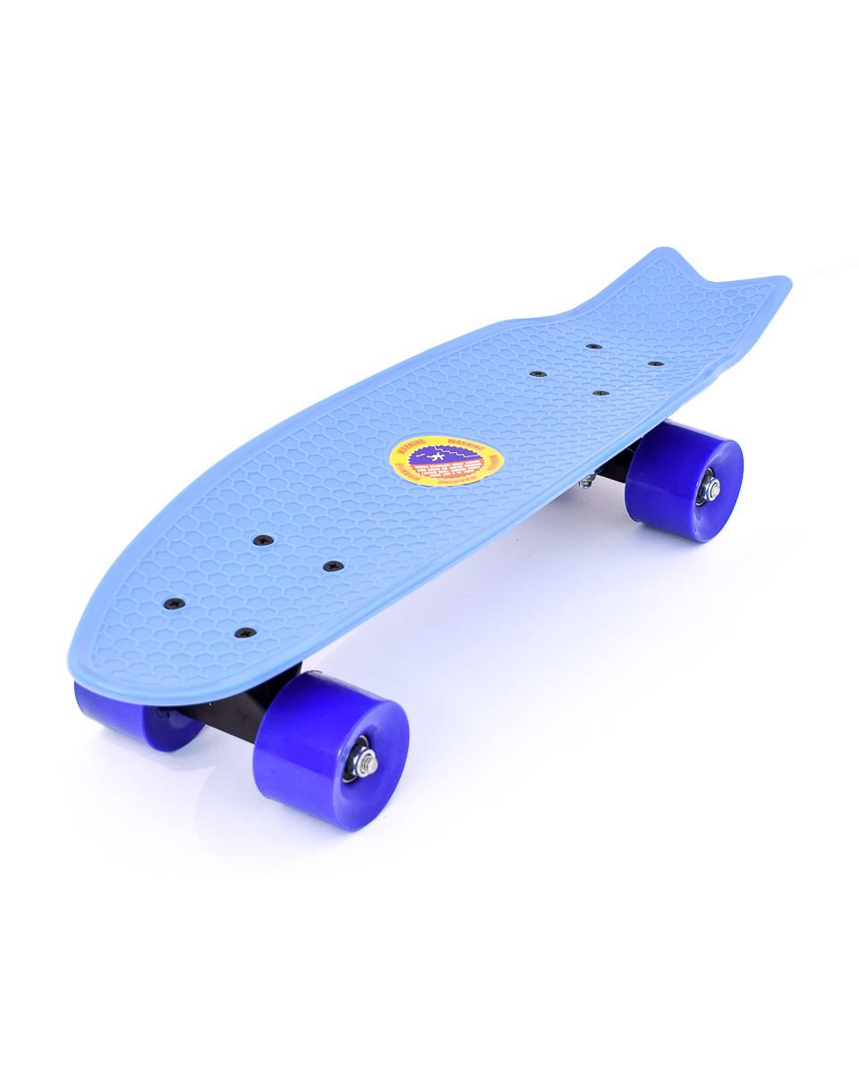 Скейтборд пластиковый 55см, маневренный, голубой, колеса PVC фиолетовые – стильный круиз