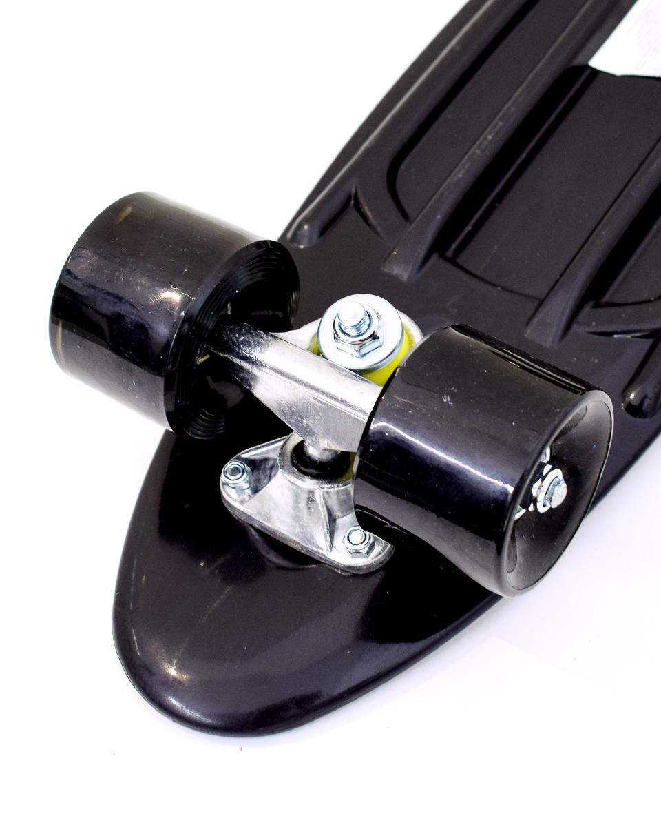 Легкая и прочная дека длиной 55 см с рифленой поверхностью обеспечивает надежное сцепление и идеальный контроль во время движения. Светящиеся колеса из износостойкого PVC добавят стиля вашим вечерним прогулкам.