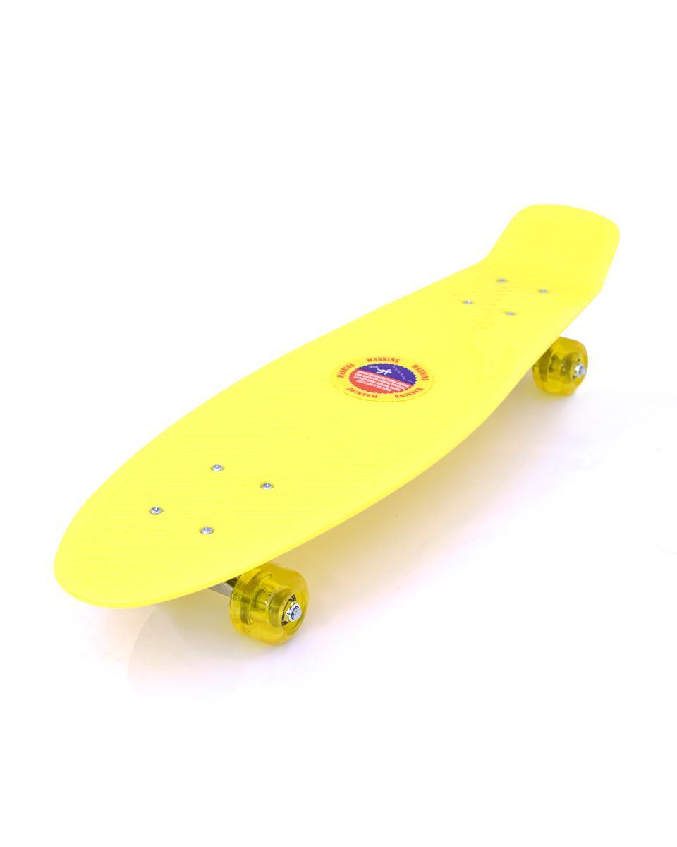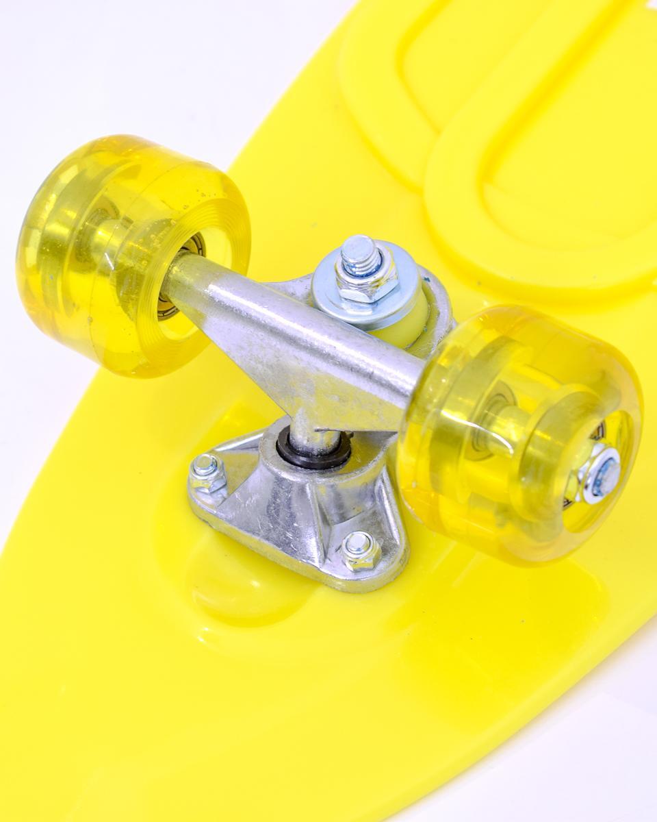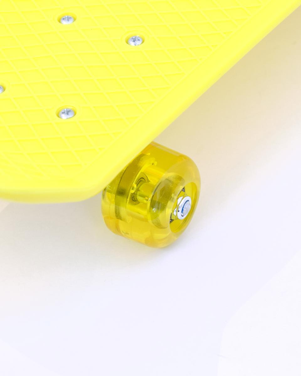 - Ярко-желтый цвет делает скейтборд заметным на улице и отражает индивидуальность владельца
