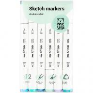 Маркеры для скетчинга 'Meshu' двусторонние, 12 шт, спиртовые чернила, морские цвета