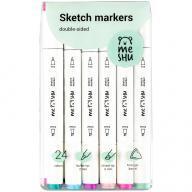 Маркеры для скетчинга Meshu, 24 шт, двусторонние наконечники 2/6 мм, спиртовые чернила, цветочная гамма