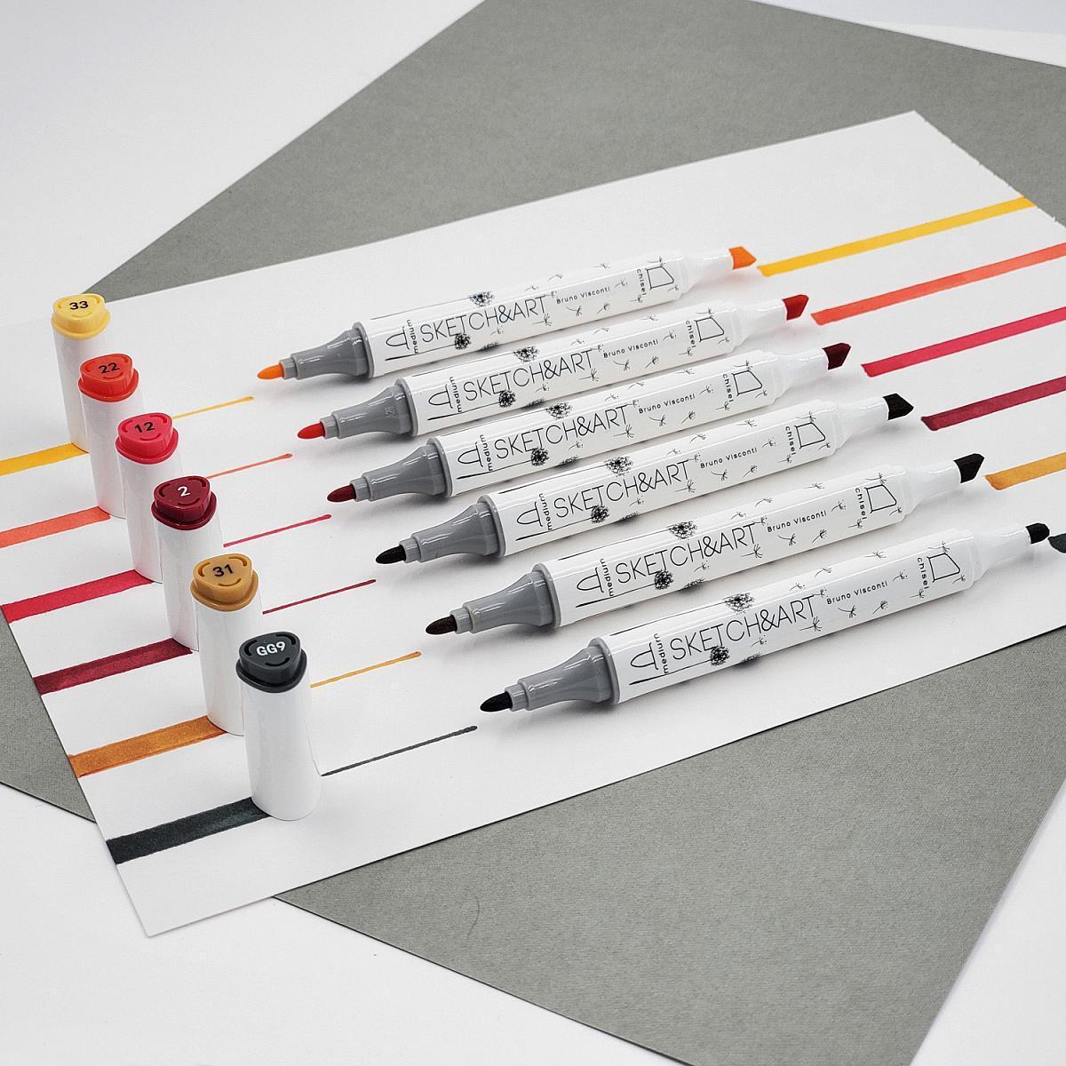 Маркеры двусторонние 'Sketch&Art. Осенний пейзаж', 6 цветов, перманентные, 1-5мм