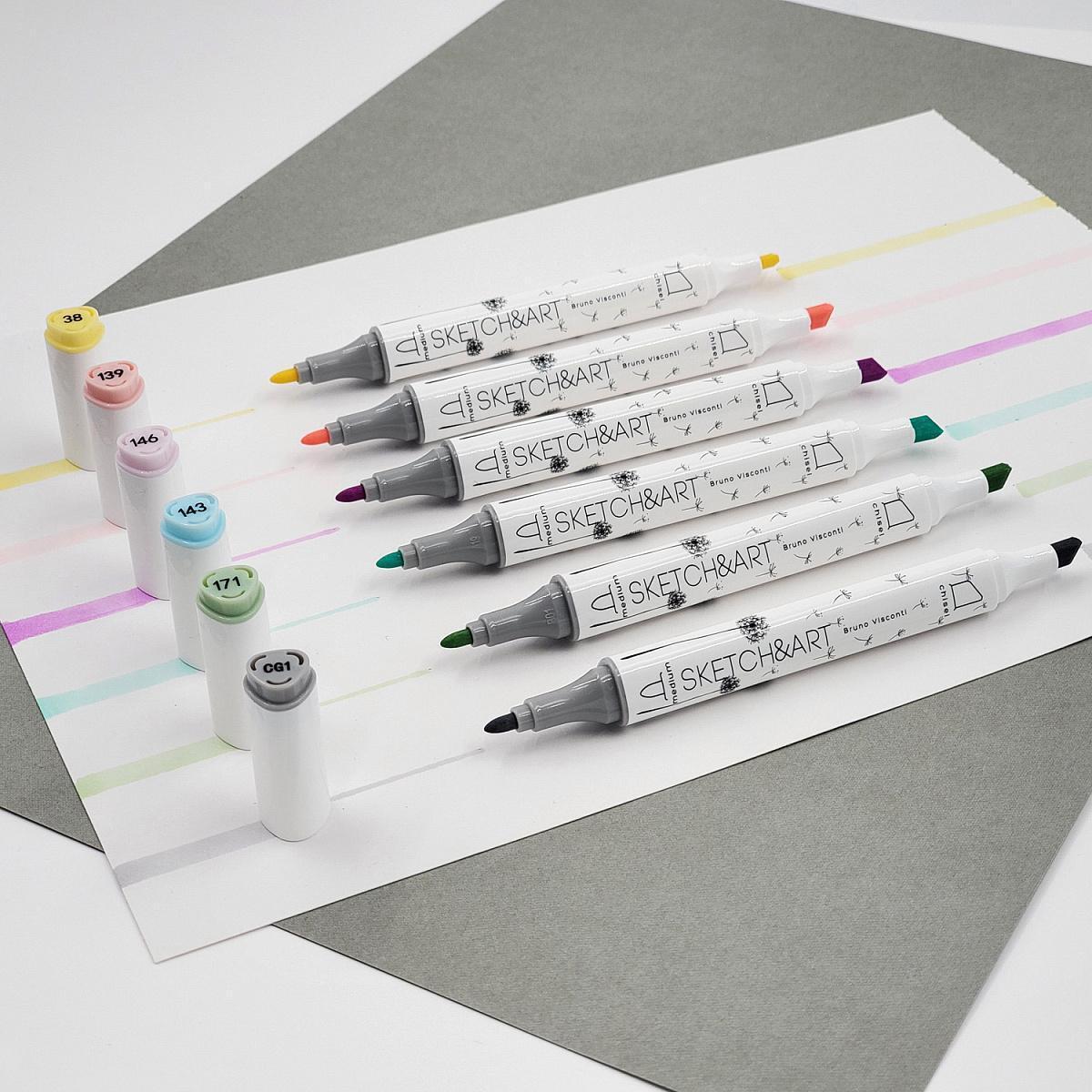 Маркеры двусторонние 'Sketch&Art', 6 цветов, пастельные тона