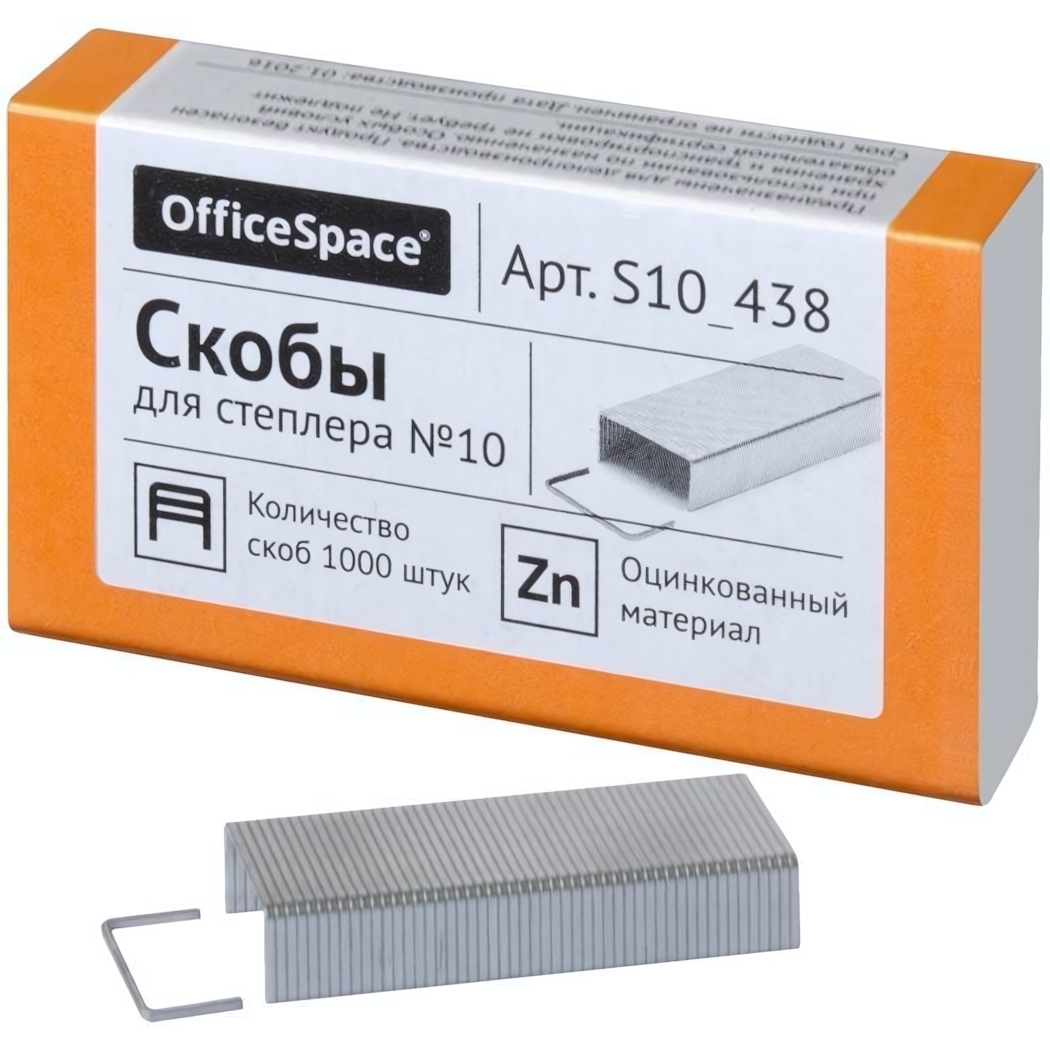 Скобы OfficeSpace №10 с оцинкованным покрытием гарантируют прочное соединение документов и сохраняют аккуратный вид бумаги. Идеальный выбор для ежедневной работы с объемными материалами.