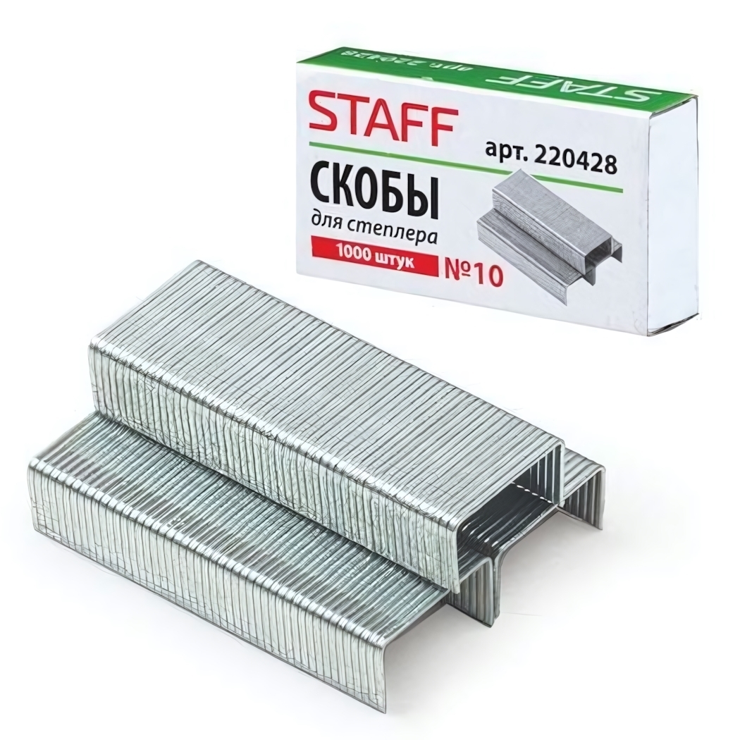 Скобы для степлера №10, металлические, 1000 шт, STAFF — надежная фиксация документов