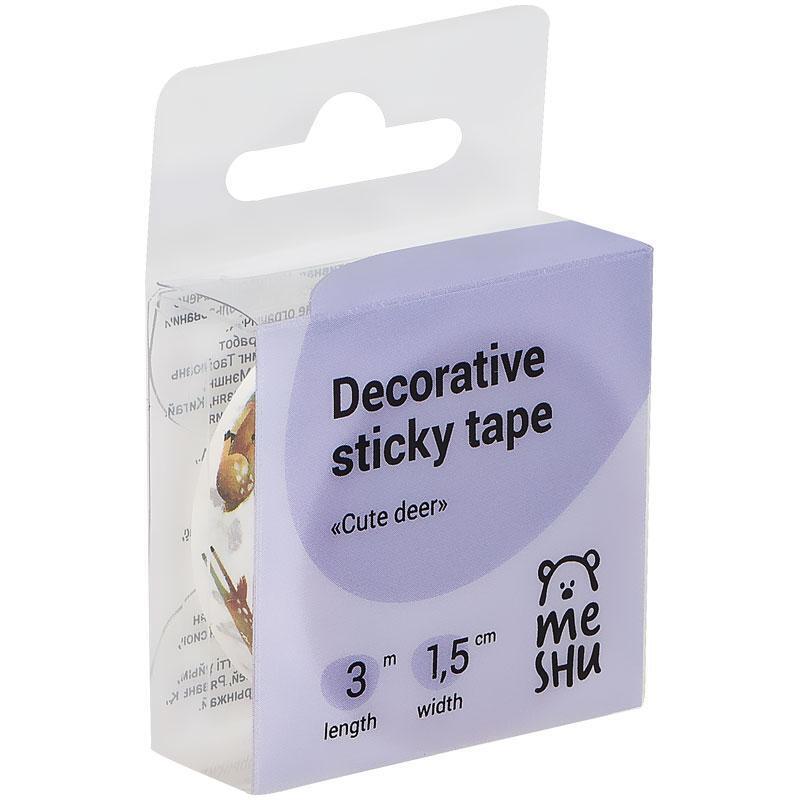 Декоративный скотч MESHU "Cute deer" для творчества и упаковки, 1,5 см х 3 м, белая основа