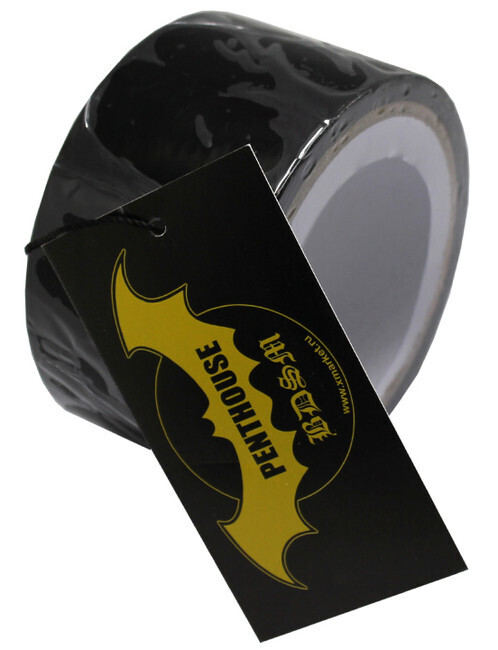 Скотч для бондажа «PENTHOUSE»: латексный, чёрный, 17м х 5см, надёжная фиксация