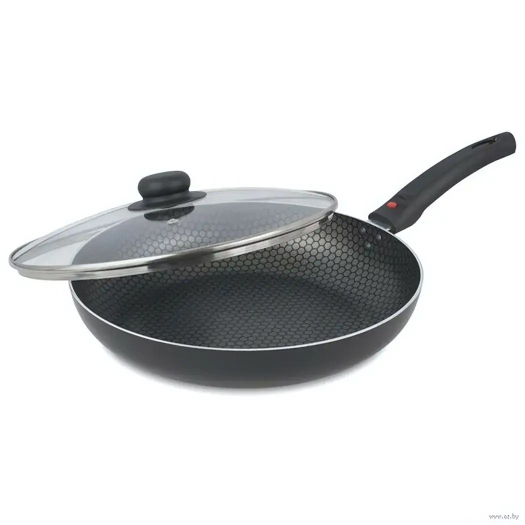 Стеклянная крышка с металлическим ободом обеспечивает контроль за готовящимся блюдом. Бакелитовая ручка не нагревается в процессе готовки, гарантируя комфортное использование.