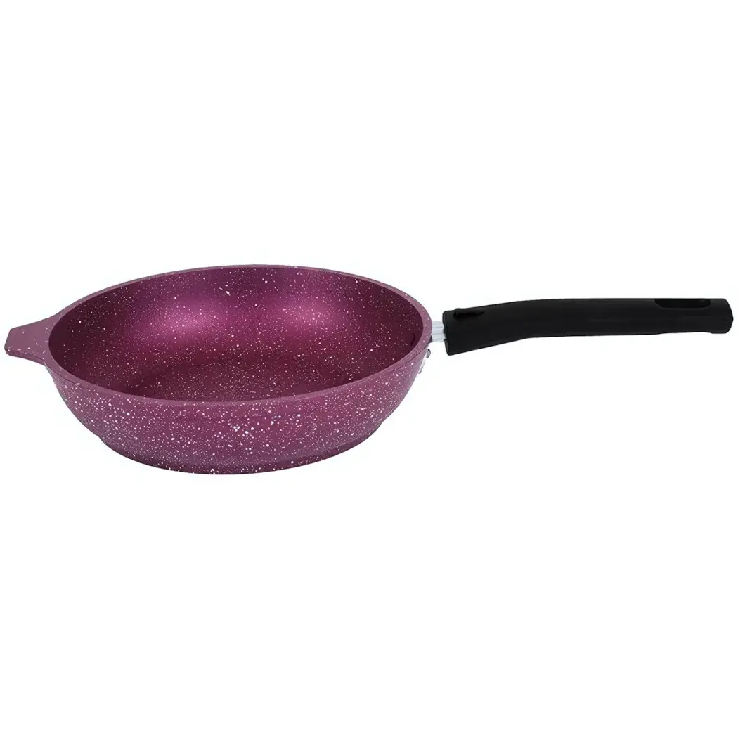Сковорода имеет стильный фиолетовый цвет с белыми точками, создающими эффект мраморности. Высокие бортики и округлая форма делают её идеальной для приготовления различных блюд. Не упустите возможность сделать вашу кухню более функциональной и стильной с этой сковородой!
