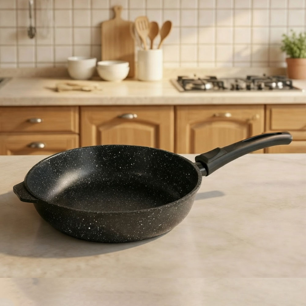 Сковорода гранитная 22см, черная, съемная ручка, алюминий литой