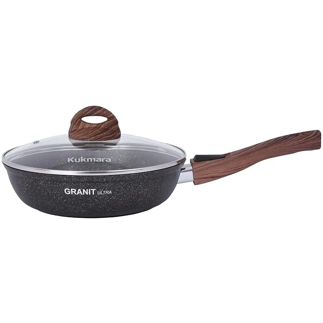 Сковорода литая 24см с крышкой, алюминий/стекло, 'Granit ultra', черная