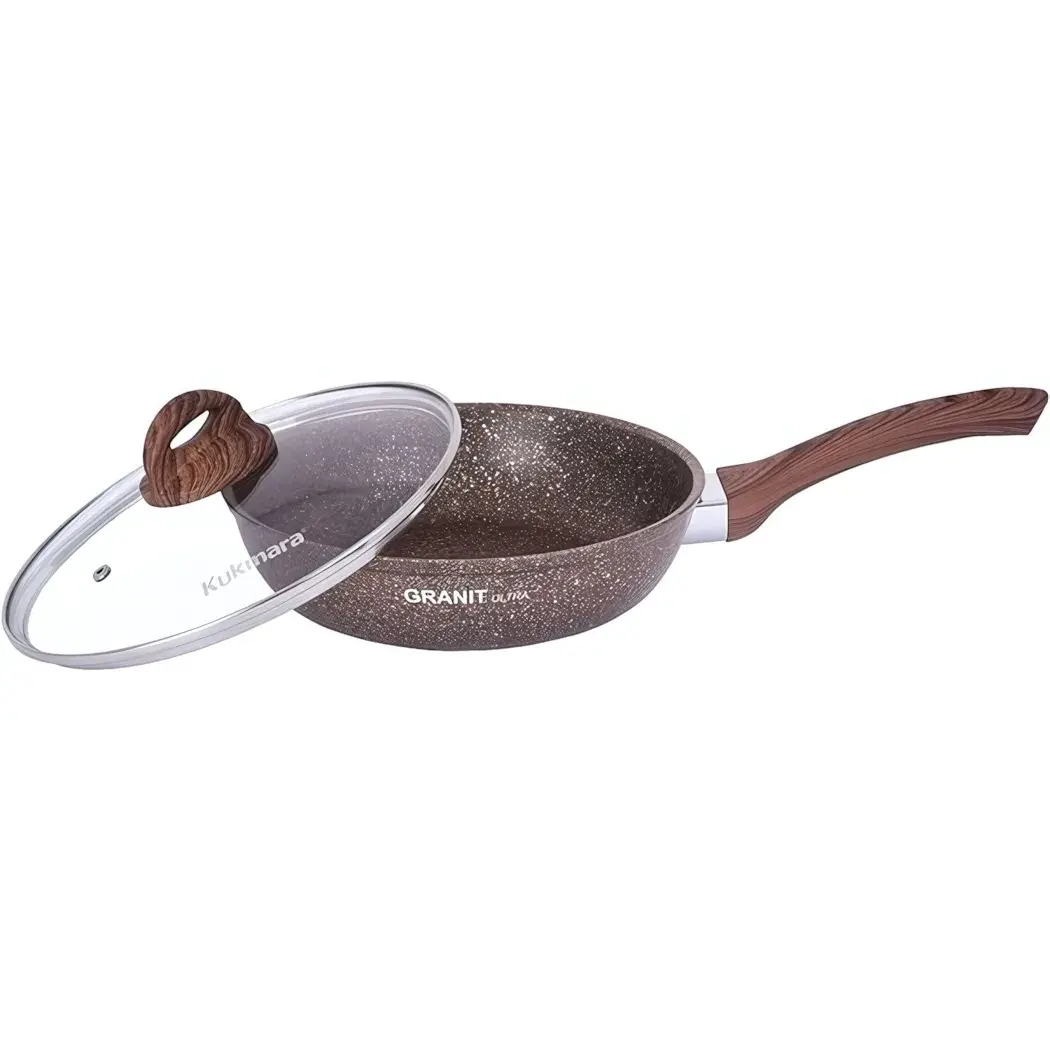 Сковорода выполнена из литого алюминия, что обеспечивает отличные теплораспределительные и теплоаккумулирующие свойства. Вы сможете наслаждаться сочными и ароматными блюдами, приготовленными в ней. Стеклянная крышка из термостойкого стекла позволяет наблюдать за процессом приготовления, не снимая крышку и не теряя тепло. Бакелитовая ручка крышки не нагревается, что делает использование сковороды еще более безопасным.