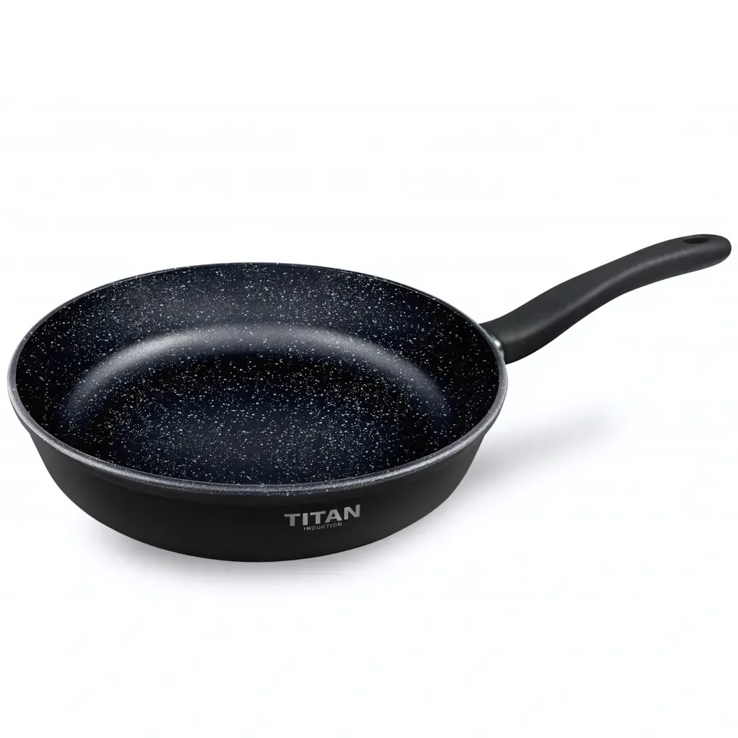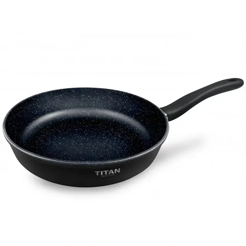 сковорода "titan" с европейской антипригарной системой премиум-класса позволяет жарить мясо, рыбу и овощи почти без масла. покрытие износостойкое, не содержит вредного pfoa и сохраняет идеальную гладкость годами.