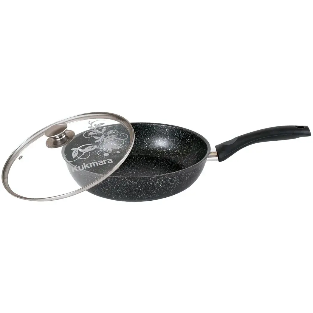 Толстое дно 4 мм предотвращает деформацию при нагреве. Мраморное напыление NanoGranite повышает износостойкость — сохраняет свойства даже при использовании металлических лопаток. Высокие бортики 6 см идеальны для жарки, тушения и приготовления соусов.