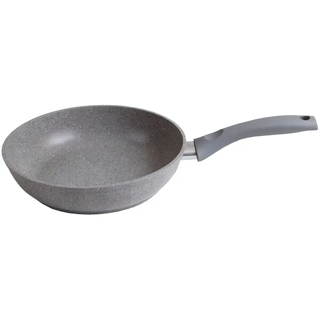 Сковорода имеет диаметр 24 см и высоту 6 см, выполнена из литого алюминия, что обеспечивает отличные теплораспределительные свойства. Серый цвет с текстурой, напоминающей камень, придаёт ей стильный вид, а эргономичная ручка обеспечивает удобный захват. Выберите сковороду «Мраморная» и наслаждайтесь готовкой!