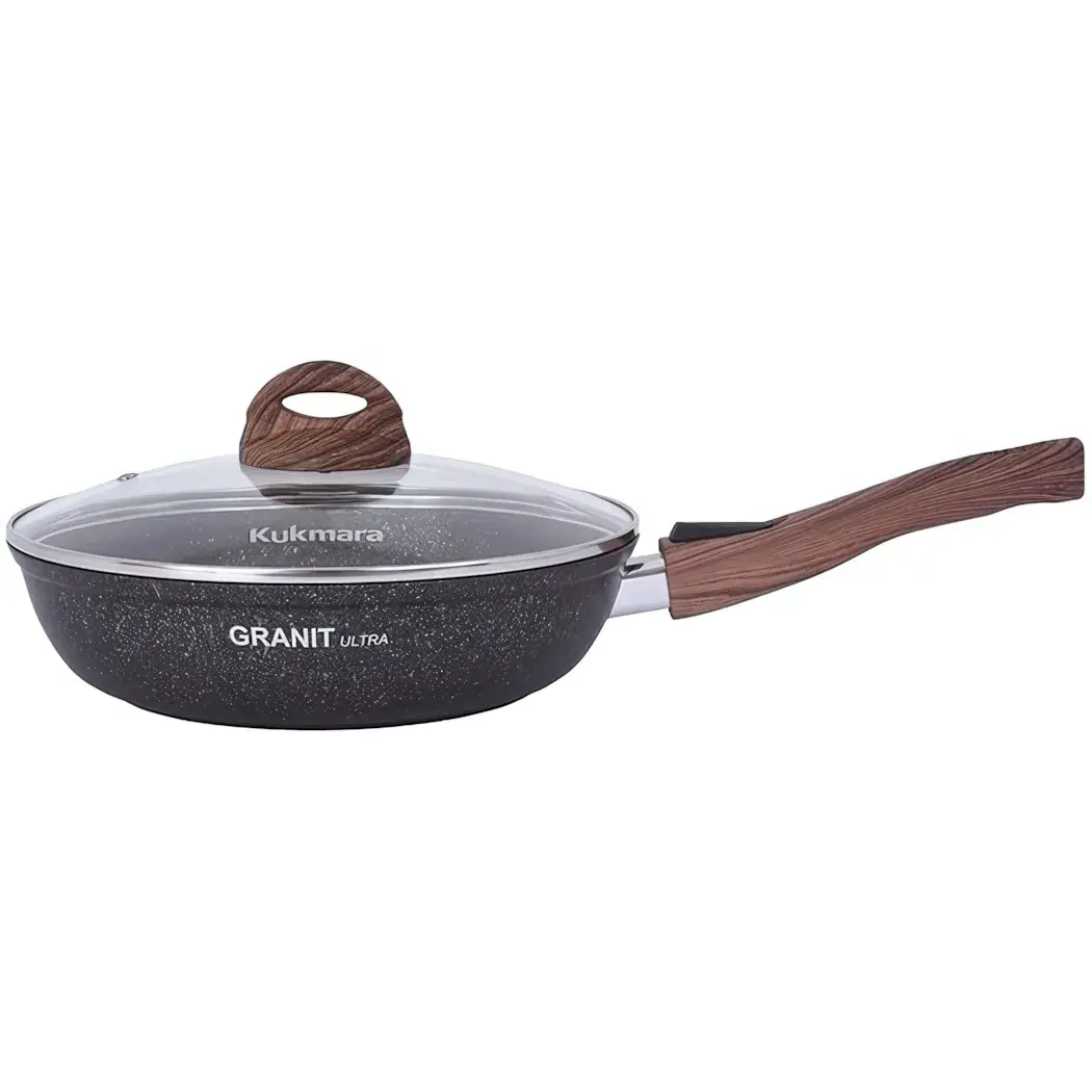 Сковорода антипригарная 26 см со съемной ручкой, литой алюминий, крышка стеклянная «Granit Ultra», черный