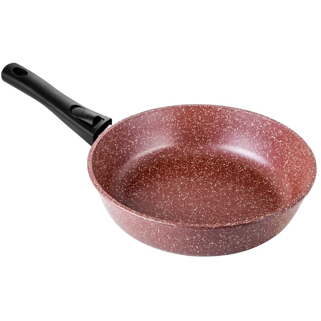 - Практичный дизайн: глубокие бортики высотой 7 см идеально подходят для жарки, тушения и приготовления соусов. Стильный бордовый цвет с мелким светлым крапом легко впишется в интерьер любой кухни.