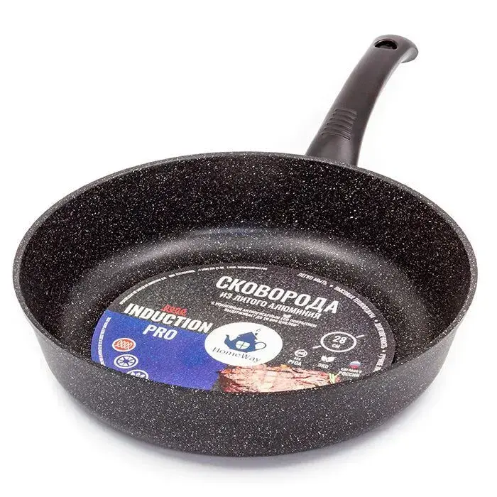 Диаметр 28 см оптимален для приготовления 2-3 порций. Высота бортов 5 см предотвращает выпадение ингредиентов. Вес 1.2 кг обеспечивает устойчивость на плите. Цветовая гамма в ассортименте — отгружается один товар случайного оттенка из доступных вариантов.