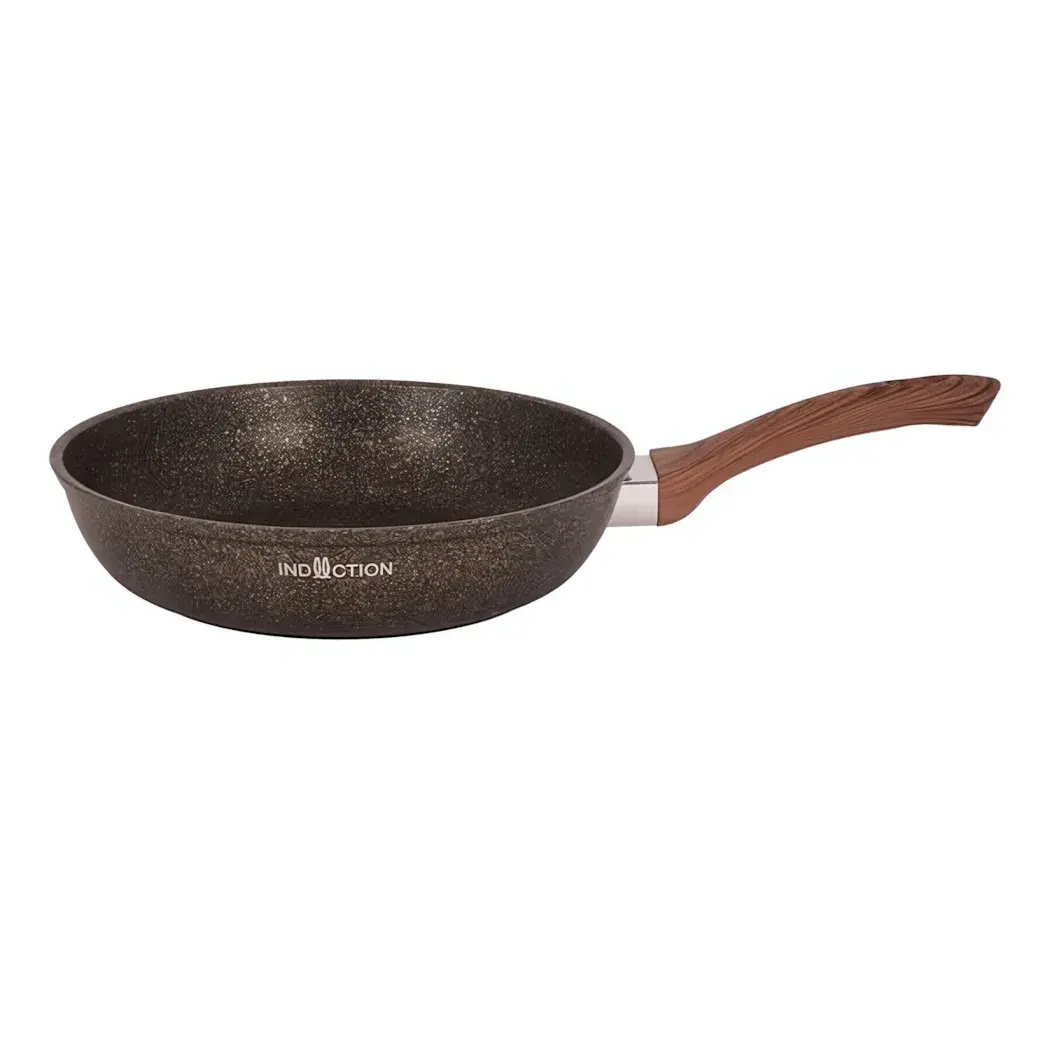 Сковорода идеально подходит для приготовления различных блюд: от яиц до мясных деликатесов. Она совместима с индукционными плитами, что делает её универсальной для любого типа кухонной техники. Ручка, выполненная из материала, имитирующего древесину, обеспечивает надежный и удобный захват, что позволяет вам легко переворачивать и перемещать блюда.