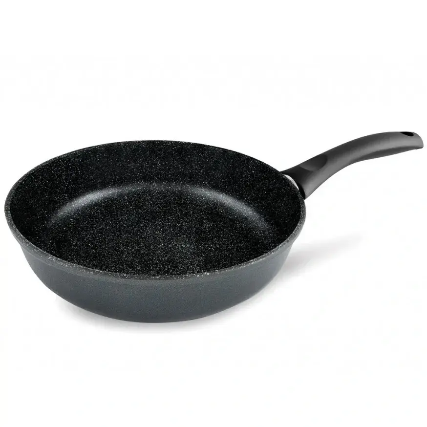Литой алюминий – это материал, который ценится за свою прочность, долговечность и отличную теплопроводность. Толщина дна 6.8 мм и толщина бортов 2.9 мм обеспечивают надежность конструкции и устойчивость к деформациям. Внутреннее антипригарное покрытие с мелкозернистой текстурой гарантирует, что пища не будет прилипать, а мытье сковороды станет простым и быстрым. Черный матовый корпус и элегантный дизайн делают её стильным дополнением к любой кухне.