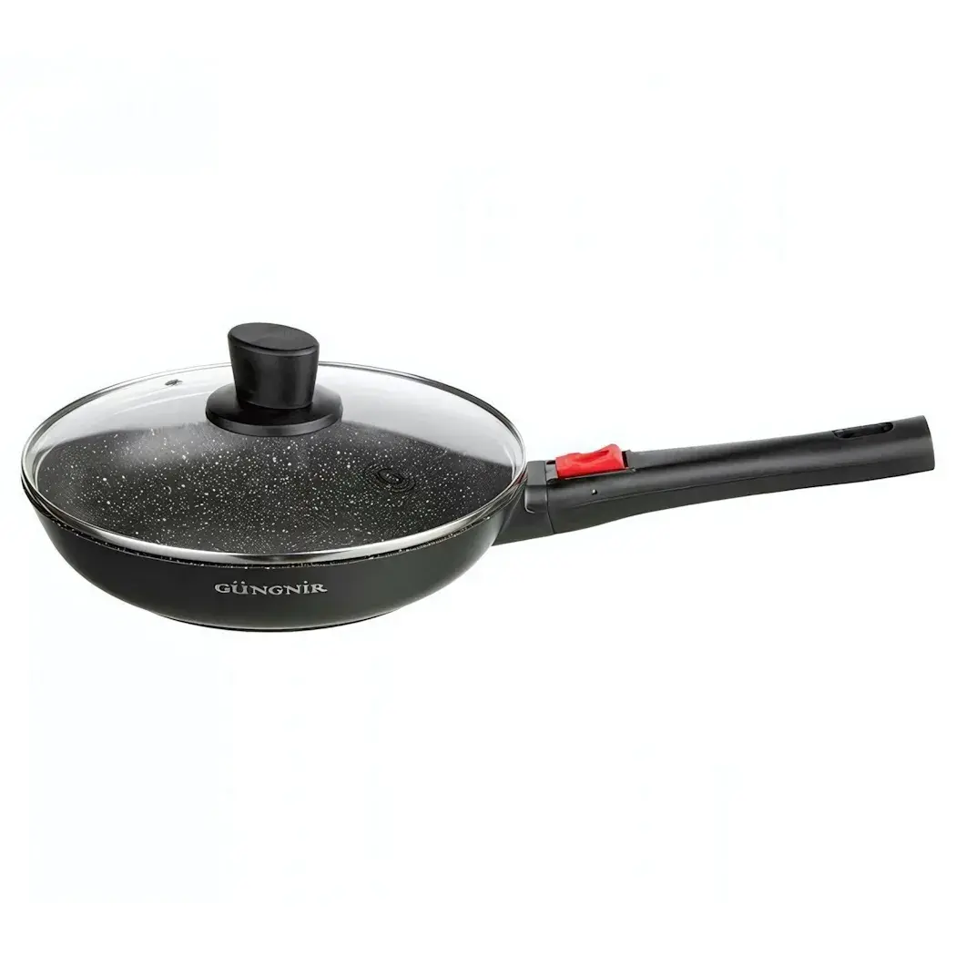 Сковорода антипригарная 28см с крышкой, съемная ручка, индукционное дно, каменное покрытие «ВИКИНГ КАТУНЬ»