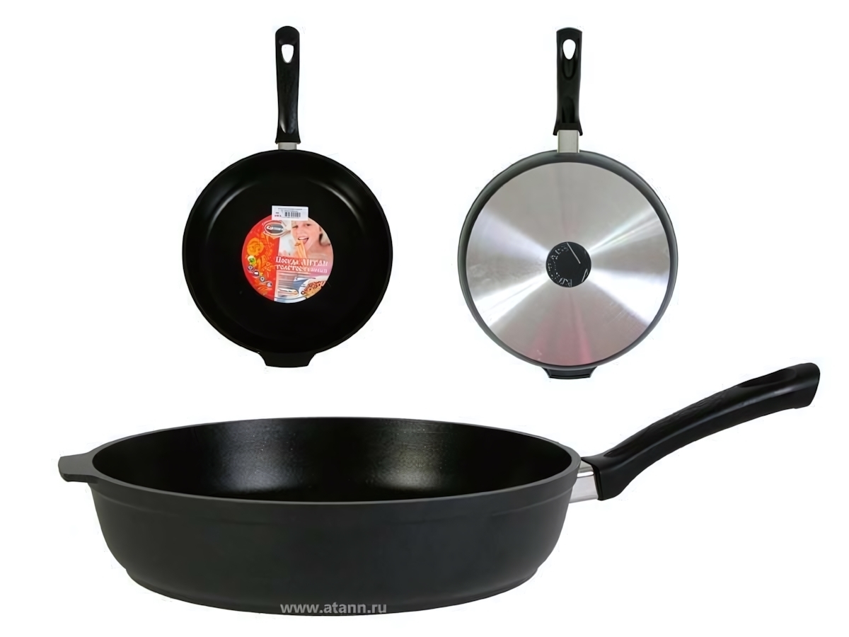 Диаметр — 28 см; материал — литой алюминий; покрытие — антипригарное; цвет — чёрный; без крышки. Идеальна для семейных обедов и быстрых ужинов.