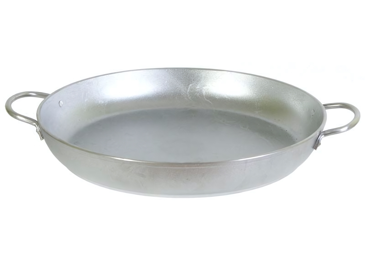 Сковорода диаметром 40 см с высотой бортов 5 см — оптимальный размер для приготовления 4-6 порций. Металлический корпус устойчив к деформациям, а прочные крепления ручек гарантируют длительный срок службы даже при интенсивном использовании.