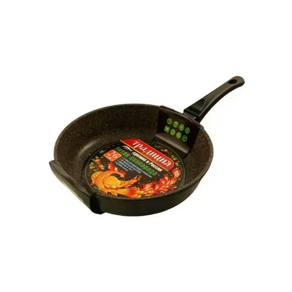 Произведено в России с контролем качества на каждом этапе. Толщина дна 4 мм обеспечивает быстрое распределение тепла, а скругленные края упрощают сервировку блюд.