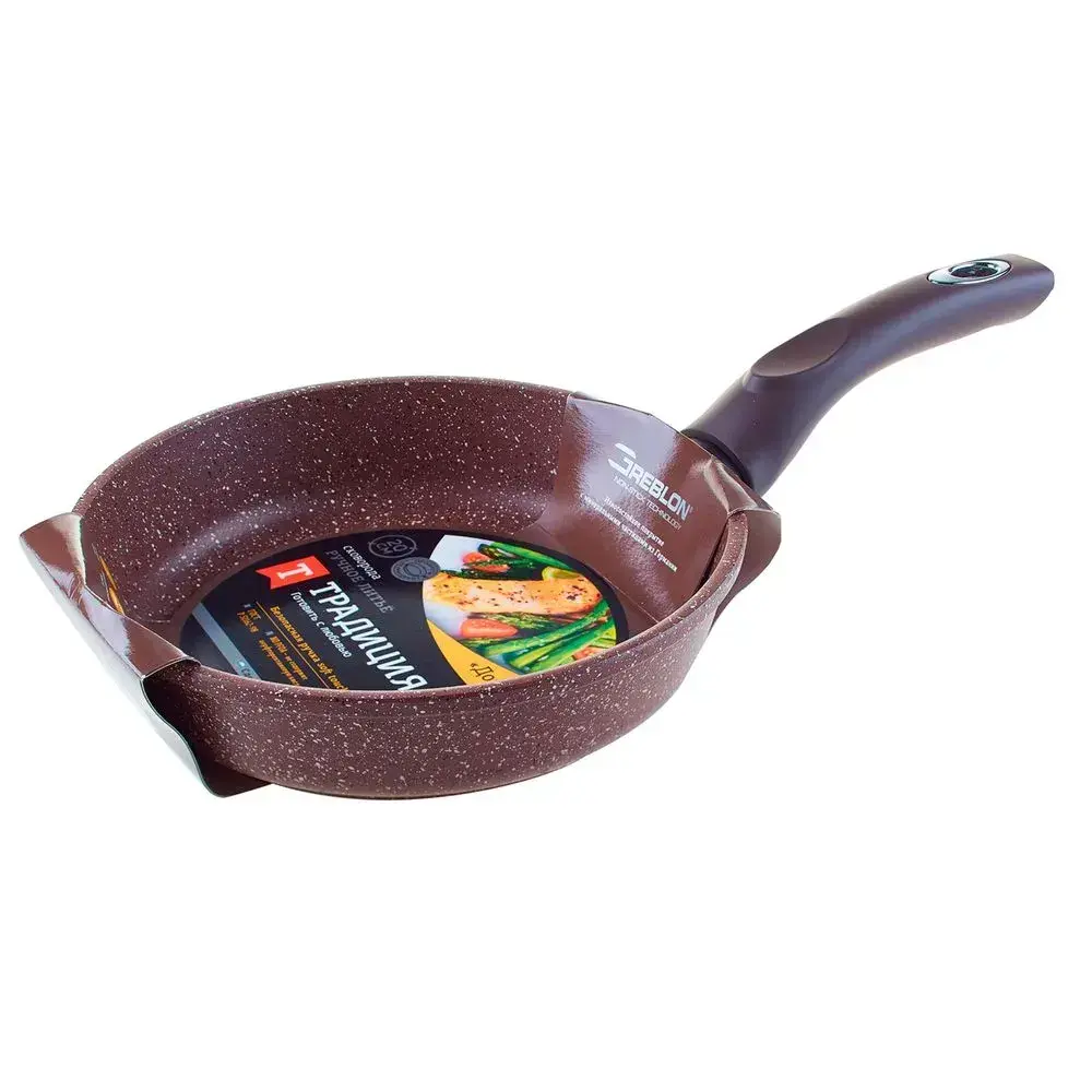 Сковорода антипригарная литая 20см, доломит, коричневая с фиолетовой ручкой, ТМ Традиция